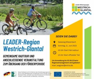 Zum Abschluss der vergangenen Förderperiode und dem gleichzeitigen Übergang in die neue Förderperiode veranstaltet die LAG Westrich-Glantal eine Fahrradtour auf einer Teilstrecke der Pfälzer Seentour an zahlreichen umgesetzten und geförderten Projekten vorbei. Werfen Sie ab 13 Uhr am Seewoog einen Blick zurück auf die letzten Jahre LEADER-Förderung in der Region und schauen Sie mit uns gemeinsam in die Zukunft.